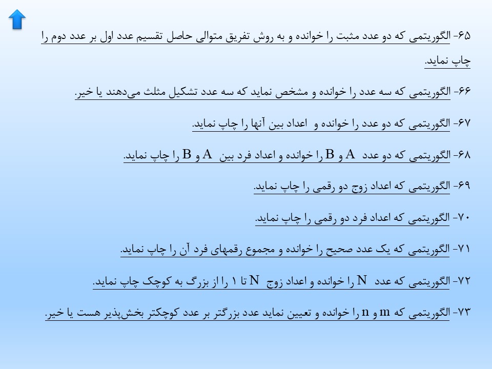 73- الگوریتمی که m وn را خوانده و تعیین نماید عدد بزرگتر بر عدد